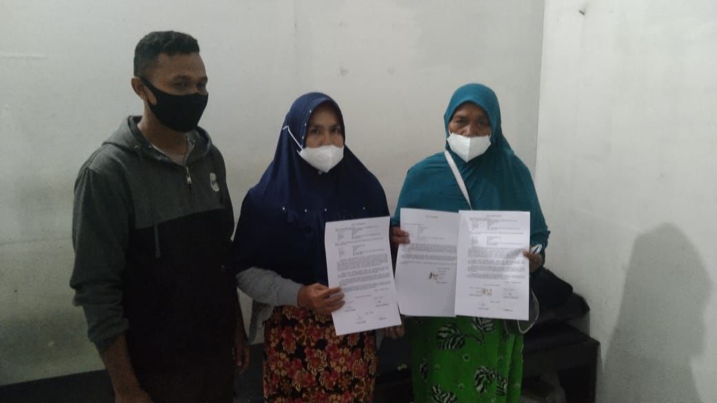 Keluarga kedua pihak menujukkan surat pernyataan damai.