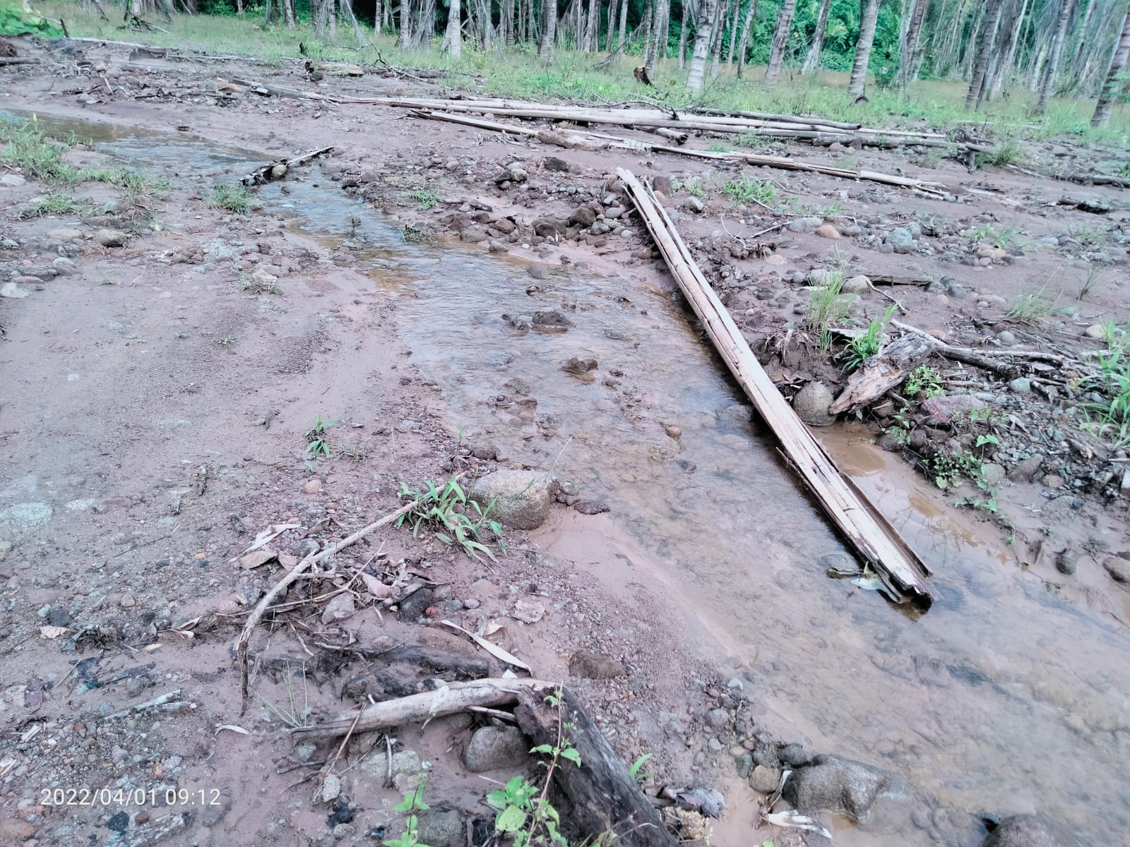 Sungai yang mengalir ke kebun-kebun warga pun sudah tercemar.