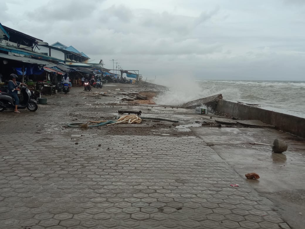 Tepi pantai di Desa Fogi beberapa hari terakhir ini diterjang ombak besar. Ironisnya, pasar tradisional yang terletak di tepi pantai Desa Fogi, menjadi sasaran cuaca ekstrem. Talud penahan ombak di lokasi pasar juga sudah tampak jebol. Amatan terbaru Nuansa Media Grup (NMG), lantaran beberapa bagian pada talud sudah jebol, beberapa meter lagi air laut akan masuk hingga ke lokasi pasar.