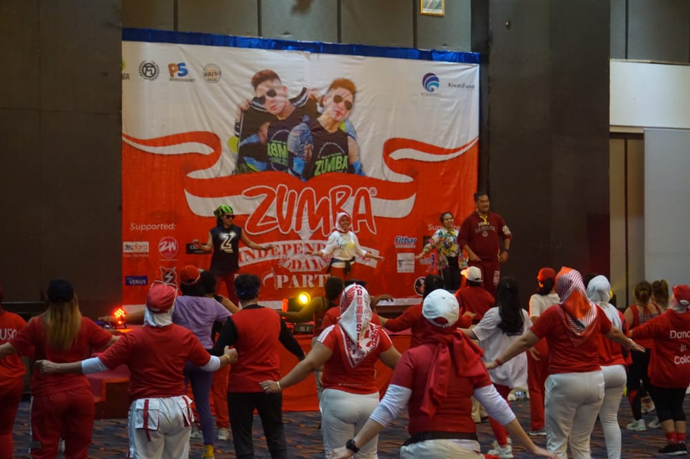 TERNATE, NUANSA – Ragam cara dilakukan warga negara Republik Indonesia untuk merayakan hari proklamasi kemerdekaan Indonesia yang ke-77 tahun. Di Kota Ternate, selain pemerintah daerah yang menggelar upacara bendera dan ragam acara lainnya, terdapat pula berbagai komunitas yang menyelenggarakan gelaran untuk menyambut hari istimewa tersebut sejak pagi hingga petang. Salah satu dari komunitas-komunitas yang menggelar acara secara terpisah tersebut adalah komunitas zumba. Dengan mengenakan kostum yang berwarna merah dan putih, ratusan peserta zumba sejak Rabu (17/8) siang melaksanakan zumba party atau Independence Day Party bertempat di Gamalama Ball room Sahid Hotel Ternate.