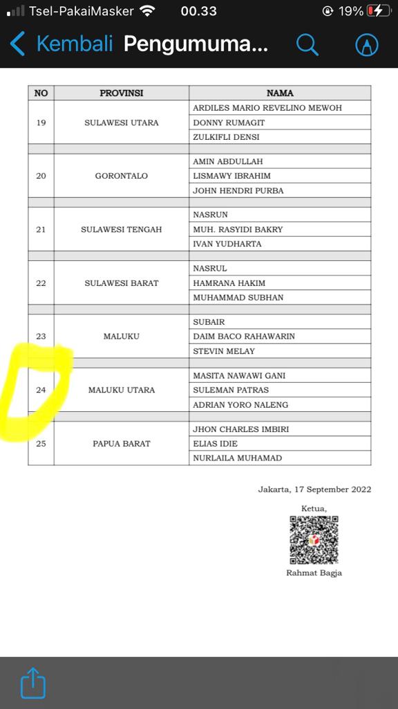 Dokumen pengumuman dengan nomor: 316/KP.01.00/KI/09/2022, ditandatanganni Ketua Bawaslu RI, Rahmat Bagja. Dalam dokumen tersebut menegaskan, pengumuman dilaksanakan dalam rangka melaksanakan amanat Undang-Undang nomor 7 tahun 2007 tetang pemilihan umum.