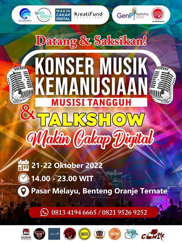 Pada konteks pemulihan inilah para musisi Maluku Utara mencoba tampil dalam sebuah gelaran konser musik bertajuk konser kemanusiaan yang merupakan kerja kolaborasi manajement literasi digital provinsi Maluku Utara untuk mengkampanyekan project makin cakap digital kepada komunitas seniman dan budayawan serta para penggiat parawisata Maluku Utara dengan menggelar talkshow makin cakap digital yang menghadirkan para narasumber antara lain: Tahmid Wahab (Kepala Dinas Pariwisata dan Ekonomi Kreatif Provinsi Maluku Utara), Sutego, S.T (Kepala Dinas Kominfo, Statistik dan Persandian Kabupaten Halmahera Selatan), Fenny Kiat, S.STP., M.Si (Kadis Pariwisata Kabupaten Halmahera Barat) dan Syarif H. Sabatun (Kepala Dinas Kebudayaan Kota Ternate).