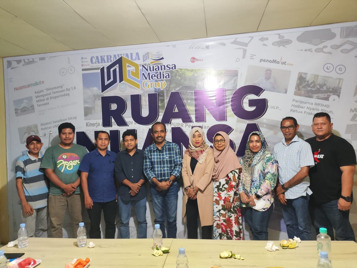 TERNATE, NUANSA – Kepala Dinas Kearsipan dan Perpustakaan (Disarpus) Provinsi Maluku Utara, Mulyadi Tutupoho bersama jajarannya melakukan kunjungan ke kantor Nuansa Media Grup (NMG) di Kelurahan Kampung Makassar Timur, Kota Ternate, Kamis (3/11) sore sekira pukul 16.00. Kehadiran jajaran Disarpus Pemprov Maluku Utara itu disambut baik CEO Nuansa Media Grup, Irman Saleh.