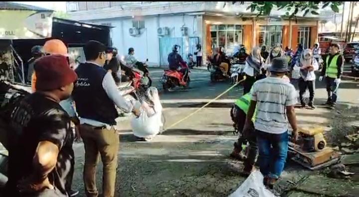 TERNATE, NUANSA – Dinas Pekerjaan Umum dan Penataan Ruang (PUPR) Kota Ternate, mulai action melakukan pekerjaan tambal sulam jalan berlubang.