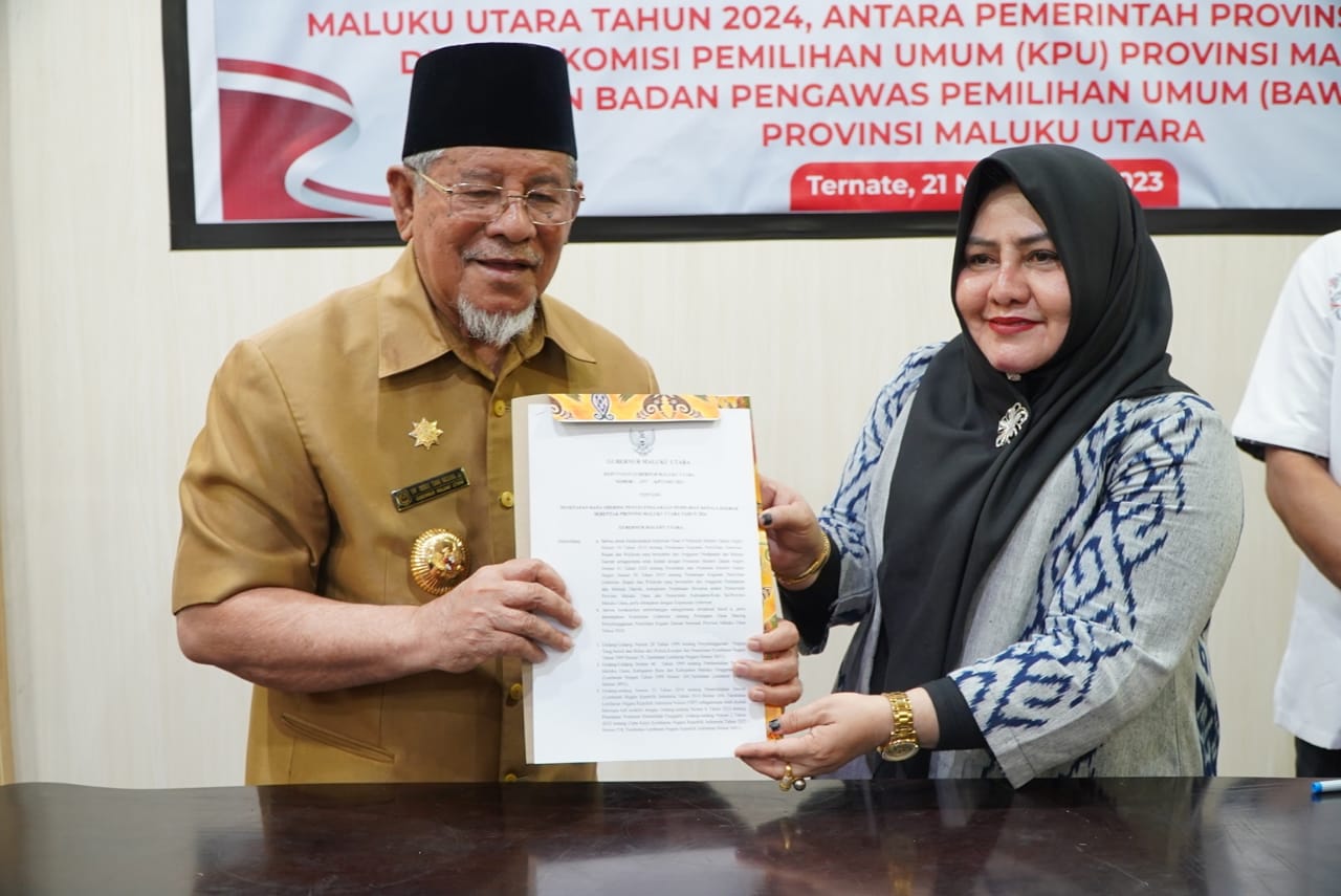 NPHD tersebut ditandatangani Gubernur Maluku Utara Abdul Gani Kasuba, serta Ketua KPU Pudja Sutamat dan Ketua Bawaslu Masita Nawawi Gani, bertempat di kediaman gubernur, Selasa (21/11).