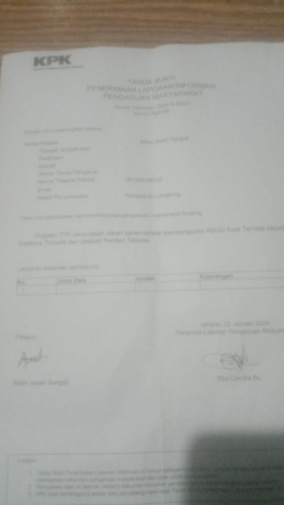 KPK Terima Laporan Mahasiswa Terkait Dugaan Suap Pembangunan RSUD Ternate