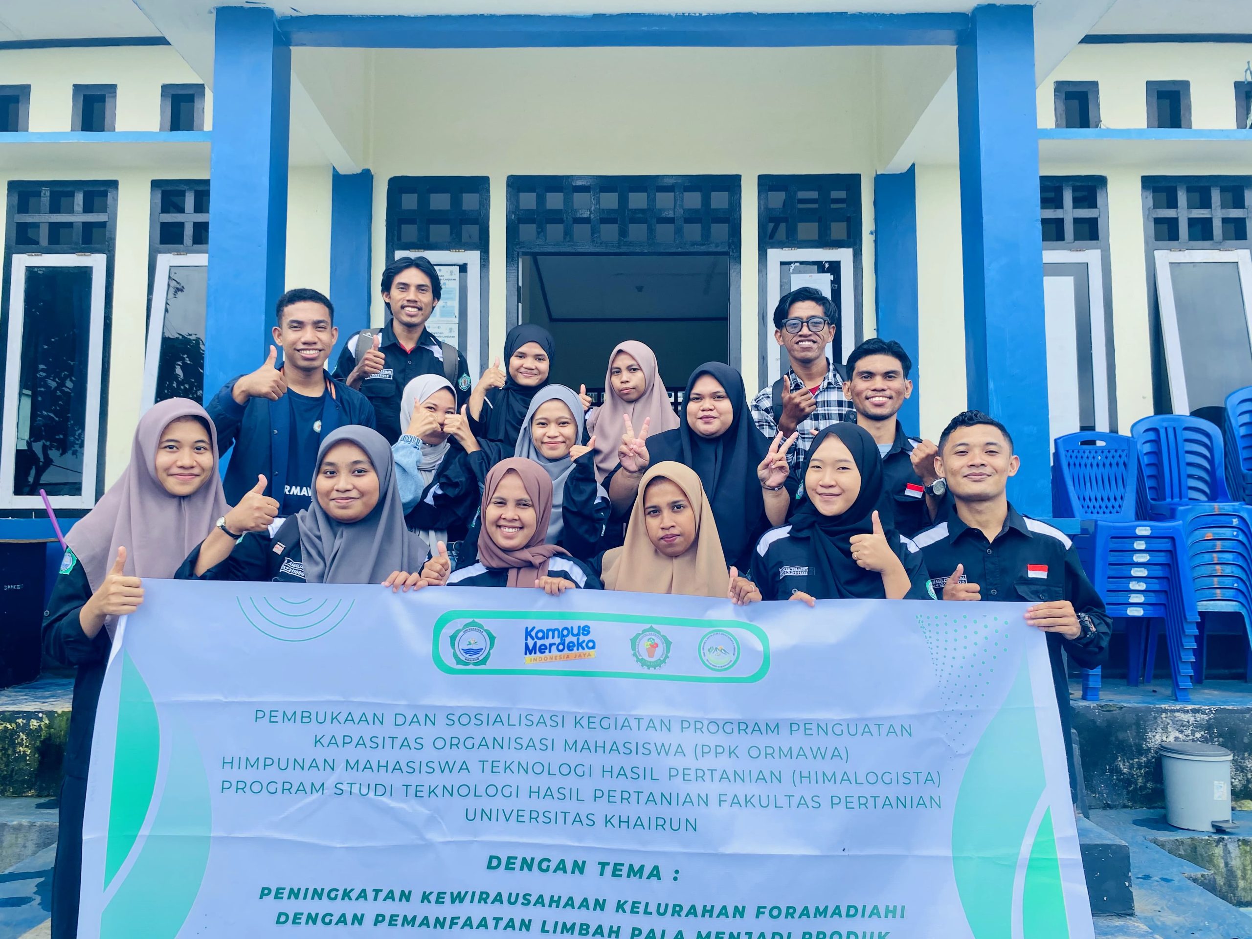Tim PPK Ormawa Himalogista Unkhair mengikuti seleksi dengan judul proposal “Peningkatan Kewirausahaan Kelurahan Foramadiahi dengan Pemanfaatan Limbah Pala untuk Menjadi Produk Unggulan”. Tim ini diketuai Eriza Amalia Syahbuddin, dan 13 anggota yang merupakan mahasiswa prodi THP Unkhair.