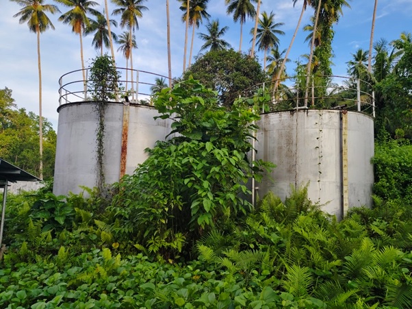 Tangki minyak PLN ULP Gane Luar ditumbuhi semak belukar.