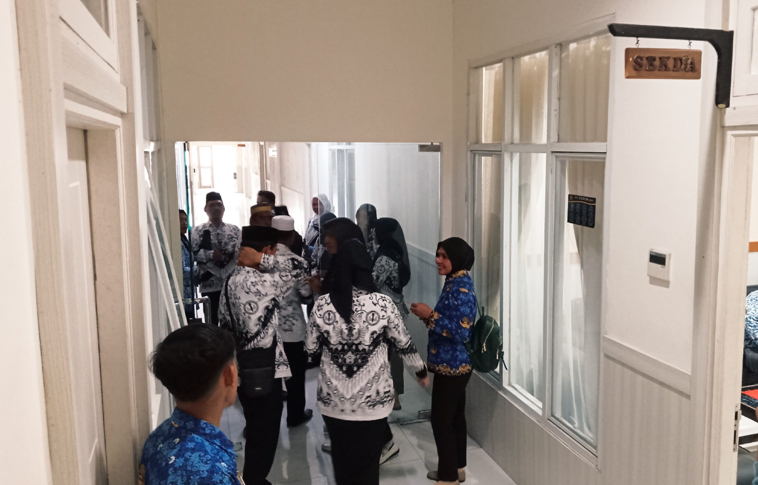 DARUBA, NUANSA – Sejumlah guru yang terhimpun dalam Persatuan Guru Republik Indonesi (PGRI) Kabupaten Pulau Morotai mendatangi kantor bupati, Senin (28/10).