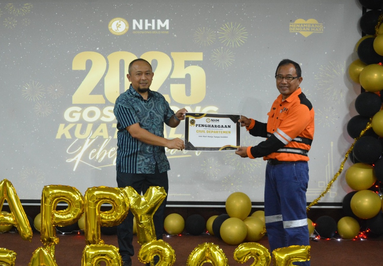 Sebagai bentuk apresiasi budaya keselamatan yang diterapkan, Manajemen NHM memberikan penghargaan atas kerja keras dan disiplin Tim Civil dalam menjaga keselamatan di tempat kerja. Penghargaan tersebut diserahkan oleh General Manager Production & Planning, Kiki Kosmara, kepada Manager Civil, Widodo pada momentum Acara Malam Ramah Tamah Menyongsong Tahun Baru 2025, pada Selasa (31/12/24) di Gedung Two Rivers Gosowong.