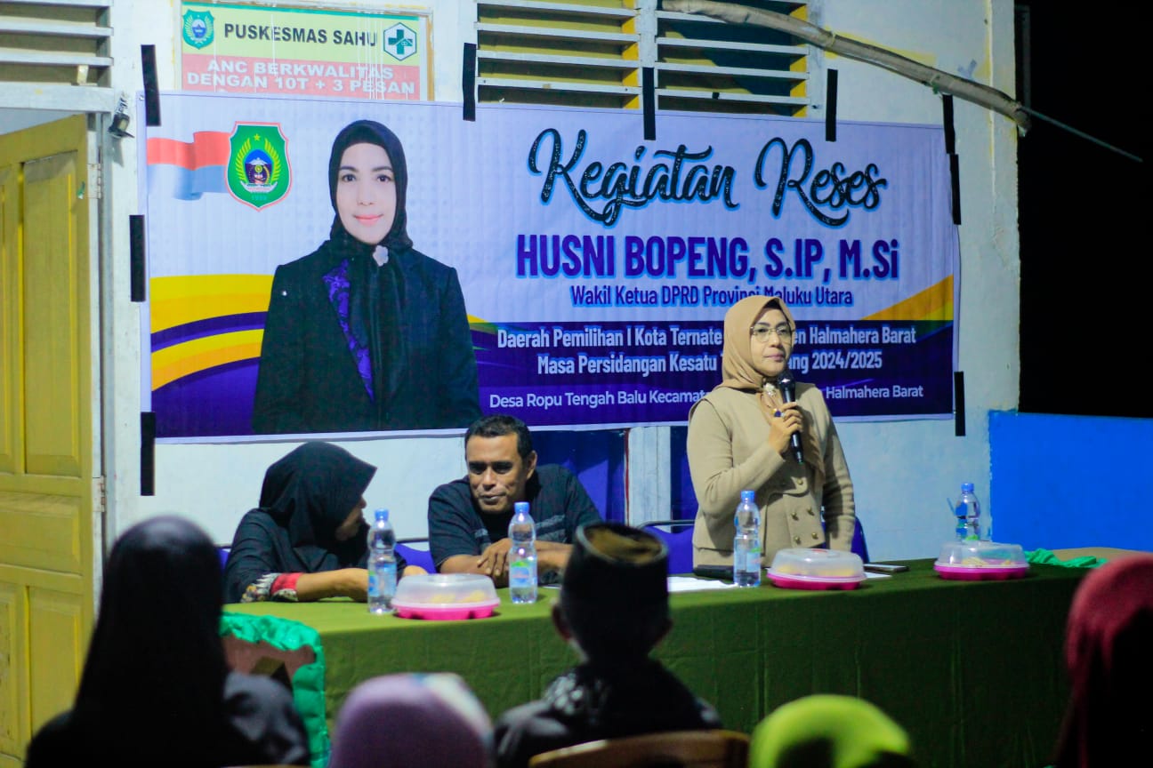JAILOLO, NUANSA – Anggota DPRD Provinsi Maluku Utara dapil I Kota Ternate-Halmahera Barat, Husni Bopeng, melakukan reses di Desa Ropu Tengah Balu (RTB), Kecamatan Sahu, Halmahera Barat, Kamis (23/1) malam.