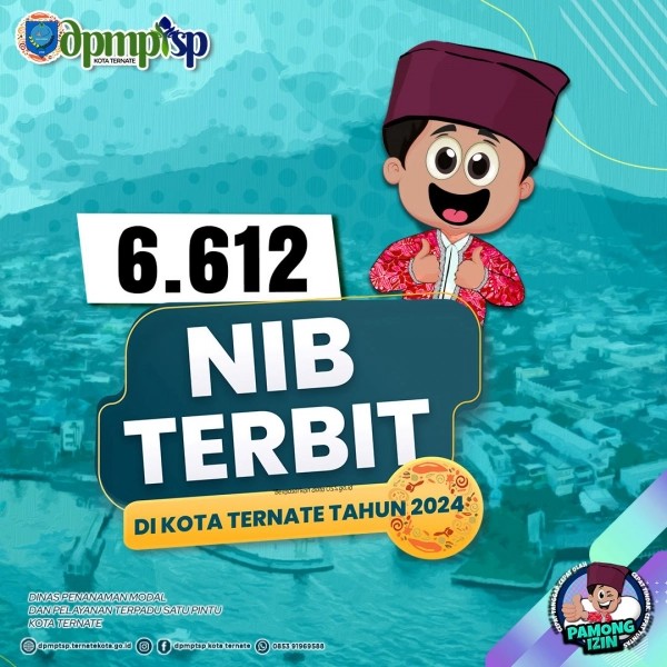 Kepala DPMPTSP Kota Ternate, Bahtiar Teng, mengatakan pada tahun 2024 NIB yang terbit di Kota Ternate mengalami kenaikan hampir 50 persen dibanding dengan tahun 2023, yang mana pada tahun 2023 NIB yang terbit sebanyak 4.862 dan pada tahun 2024 ini 6.612 NIB yang terbit.