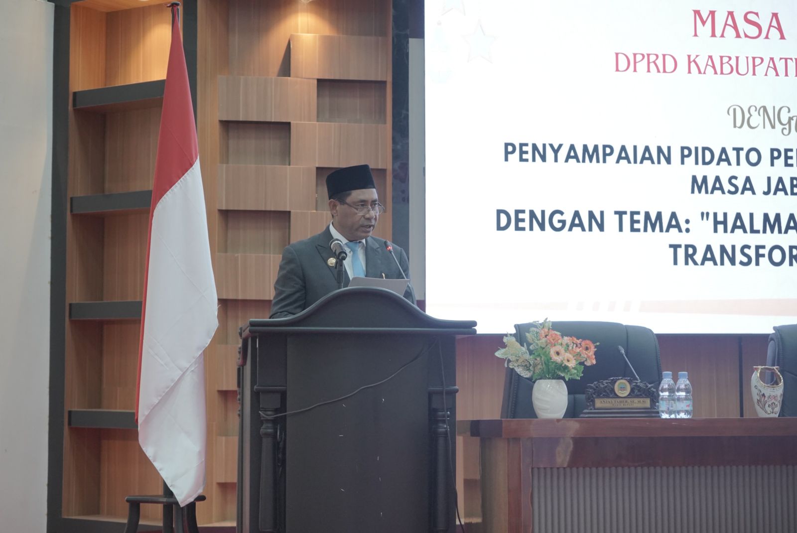 MABA, NUANSA – Bupati Halmahera Timur Ubaid Yakub menyampaikan pidato perdana pada paripurna DPRD pasca dilantik oleh Presiden RI Prabowo Subianto di Istana Negara pada (20/2). Bersama wakilnya Anjas Taher, Ubaid kini kembali bertugas di periode kedua setelah mengikuti retreat kepala daerah di Magelang, Jawa Tengah.