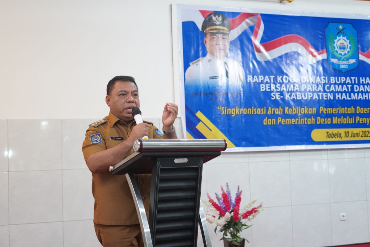 TOBELO, NUANSA – Bupati Halmahera Utara, Piet Hein Babua, bersama para camat dan kepala desa se-Halmahera Utara menggelar rapat koordinasi (rakor) di Hotel Kita Desa Wosia, Kecamatan Tobelo Tengah, Selasa (10/6).