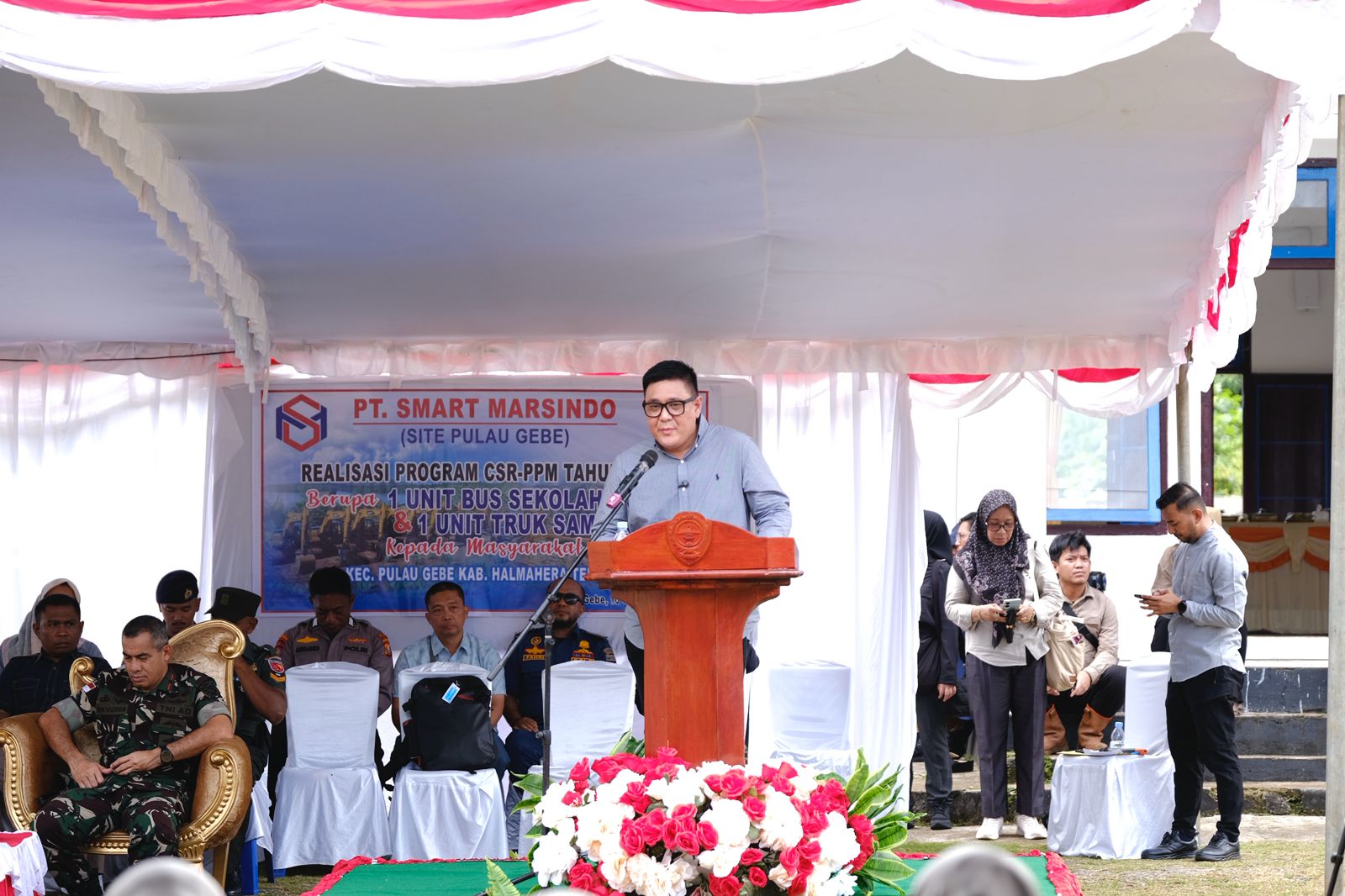 Pimpinan PT Smart Marsindo, Jilly R Lumankun, menjelaskan penyerahan program tanggung jawab sosial perusahaan (CSR) kepada masyarakat Pulau Gebe, khususnya masyarakat lingkar tambang sebagai bagian dari komitmen perusahaan untuk terus berkontribusi dalam pembangunan berkelanjutan di wilayah operasional.