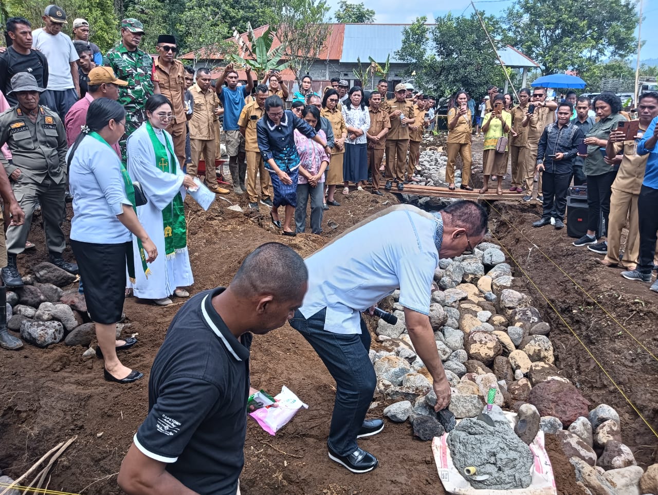 Peletakkan batu pertama pembangunan dapur MBG di Desa Tuguis, Kecamatan Ibu Utara, Halmahera Barat.