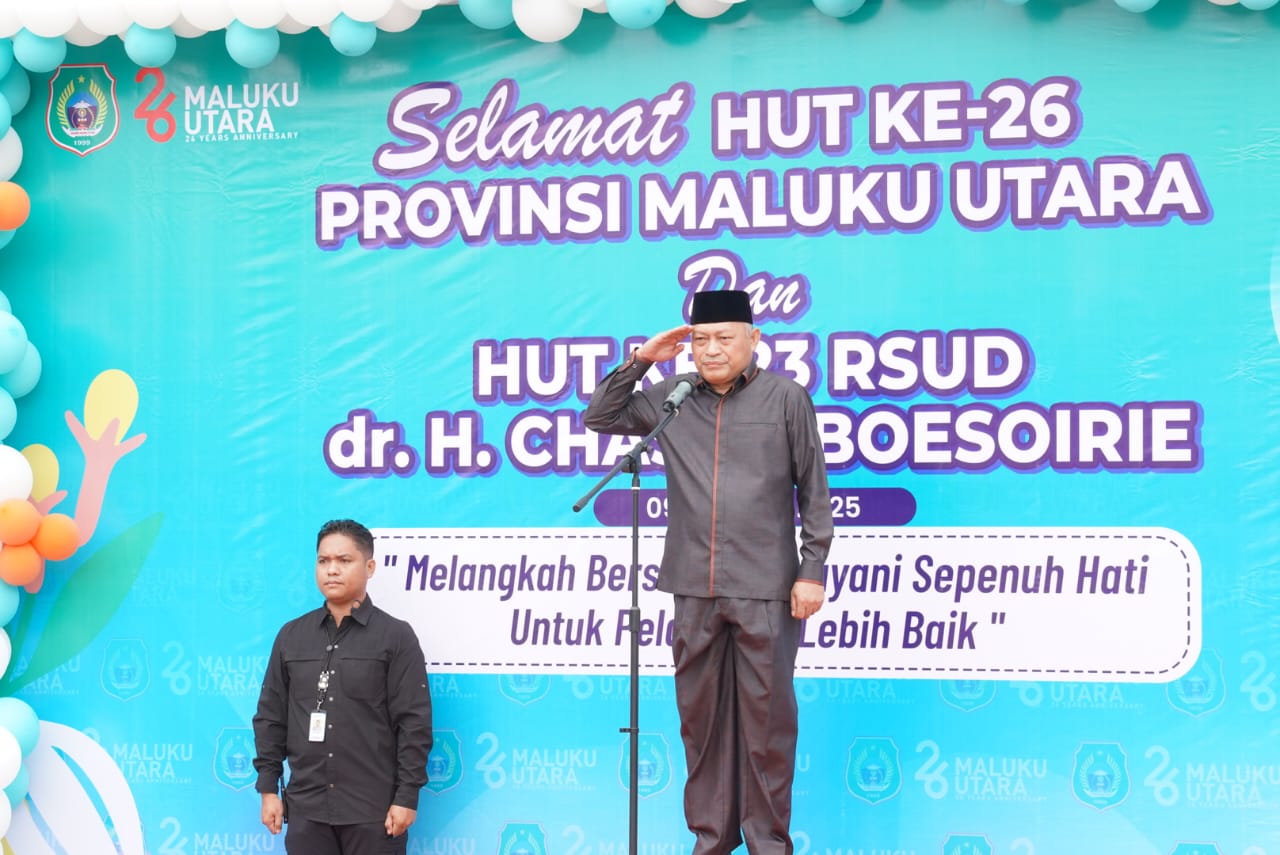 TERNATE, NUANSA – Wakil Gubernur Maluku Utara, Sarbin Sehe, menegaskan pentingnya pelayanan kesehatan yang berlandaskan nilai kemanusiaan. Hal ini disampaikan Sarbin dalam apel istimewa peringatan HUT ke-23 RSUD Chasan Boesoirie Ternate, Kamis (9/10).