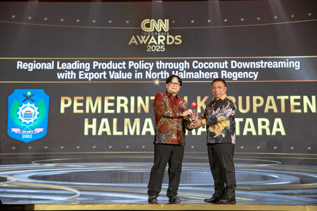 JAKARTA, NUANSA – Bupati Halmahera Utara, Piet Hein Babua, menerima penghargaan Kebijakan Produk Unggulan Daerah melalui Hilirisasi Kelapa Bernilai Ekspor di Kabupaten Halmahera Utara.