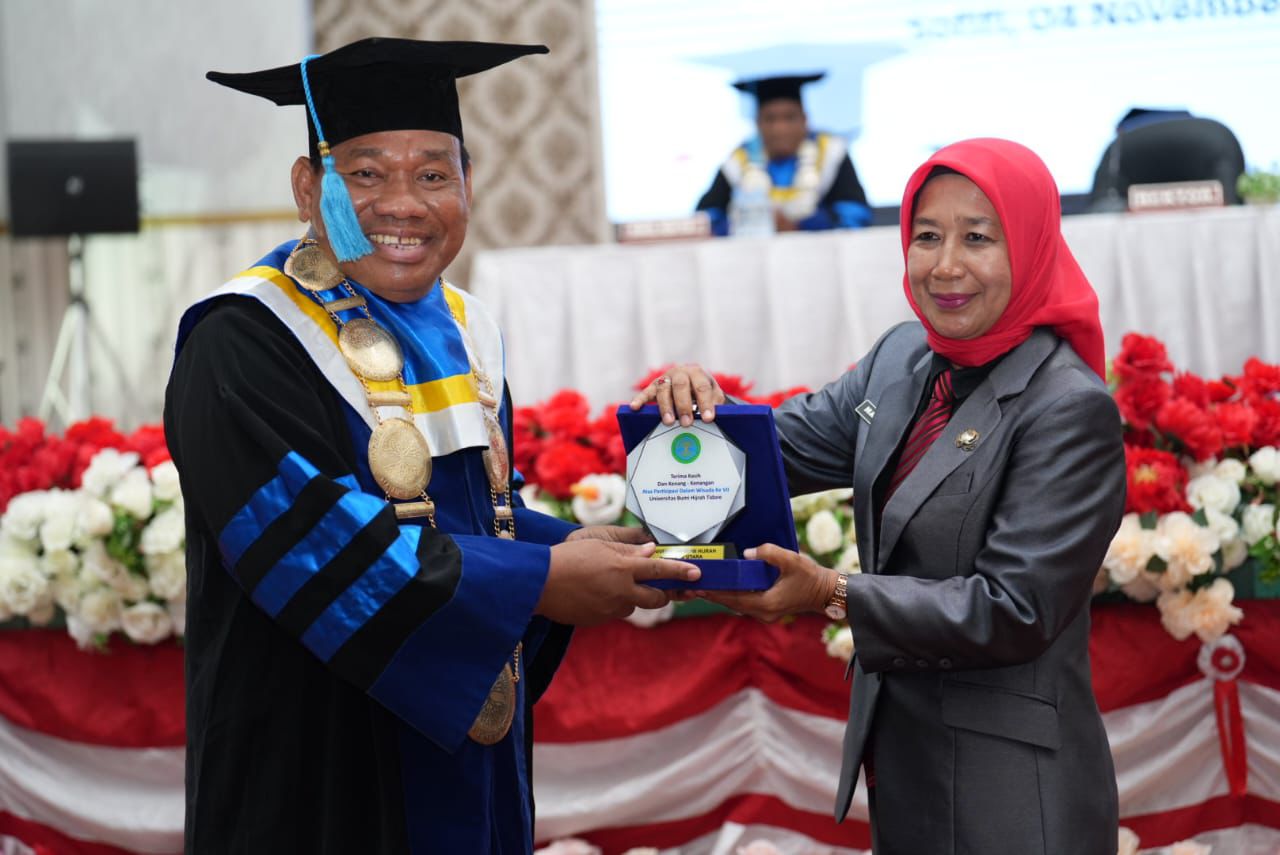 Hairiyah saat membacakan sambutan tertulis Gubernur Sherly menyampaikan apresiasi tinggi kepada civitas akademika Universitas Bumi Hijrah atas kontribusi dalam mencetak sumber daya manusia unggul di Maluku Utara.