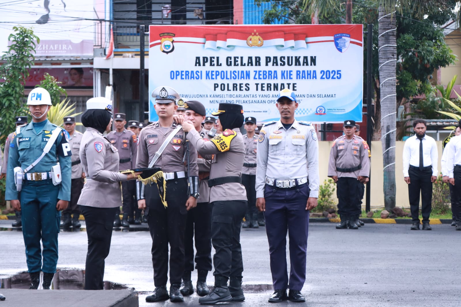TERNATE, NUANSA – Polres Ternate menggelar apel gelar pasukan operasi kepolisian Zebra Kie Raha 2025 bertempat di lapangan apel mapolres, Senin (17/11). Apel ini dipimpin langsung oleh Kapolres AKBP Anita Ratna Yulianto.