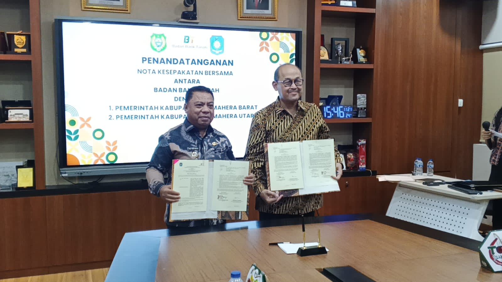 JAKARTA, NUANSA – Pemerintah Kabupaten Halmahera Utara menjalin kerja sama dengan Badan Bank Tanah di Jakarta, Jumat (21/11). Kerja sama tersebut resmi diteguhkan lewat penandatanganan nota kesepahaman (MoU) antara Bupati Halmahera Utara dan Kepala Badan Bank Tanah.