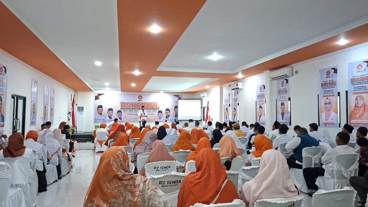 TERNATE, NUANSA – DPW Partai Keadilan Sejahtera (PKS) Maluku Utara menggelar rapat kerja wilayah (Rakerwil) di aula DPTW PKS Maluku Utara, Minggu (30/11). Kegiatan yang mengusung tema “Kokohkan Barisan, Tingkatkan Pelayanan, Raih Kemenangan” ini dihadiri oleh anggota DPR RI dapil Maluku Utara, Izzudin Alqassam Kasuba, Bupati Halmahera Selatan, anggota DPRD provinsi, anggota DPRD kabupaten/kota, dan seluruh Dewan Pengurus Tingkat Daerah (DPTD) se-Maluku Utara.