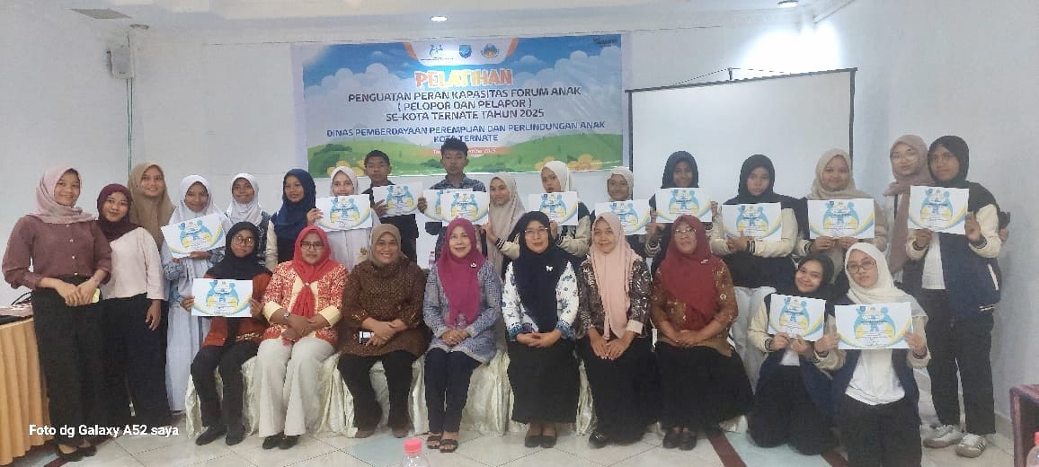 TERNATE, NUANSA – Dinas Pemberdayaan Perempuan dan Perlindungan Anak (PPPA) Kota Ternate menggelar pelatihan penguatan kapasitas Forum Anak sebagai Pelopor dan Pelapor, di Hotel Jati Ternate, Kamis (4/12).