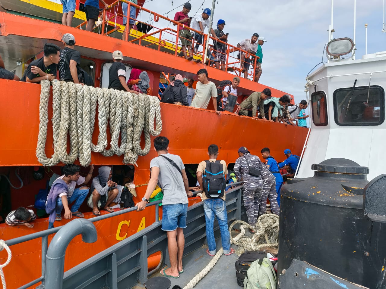 SOFIFI, NUANSA – Kapal Motor (KM) Cantika 9C dilaporkan kandas di karang perairan Weda, Kabupaten Halmahera Tengah, Kamis (11/12). Kapal cepat berpenumpang puluhan orang ini tersangkut di kawasan reff Tidore saat melintasi pada rute pelayarannya. Seluruh penumpang berhasil dievakuasi.