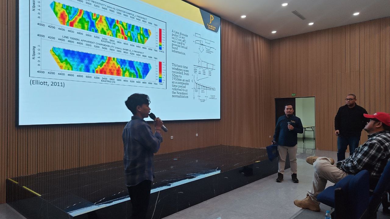 Kegiatan yang berlangsung di Auditorium Tower 2 lT.2 ini, menghadirkan para pakar yakni, Mohamad Gilang Firmansyah, S.Si., M.T. (Specialist – GIS & Data Management Mine Geology, NHM), Ir. Yoqi Ali Taufan, S.Si., M.T (Senior Geophysicist, PTPJ) dan Zulkifli, S.T. (Senior Geologist, PTPJ).