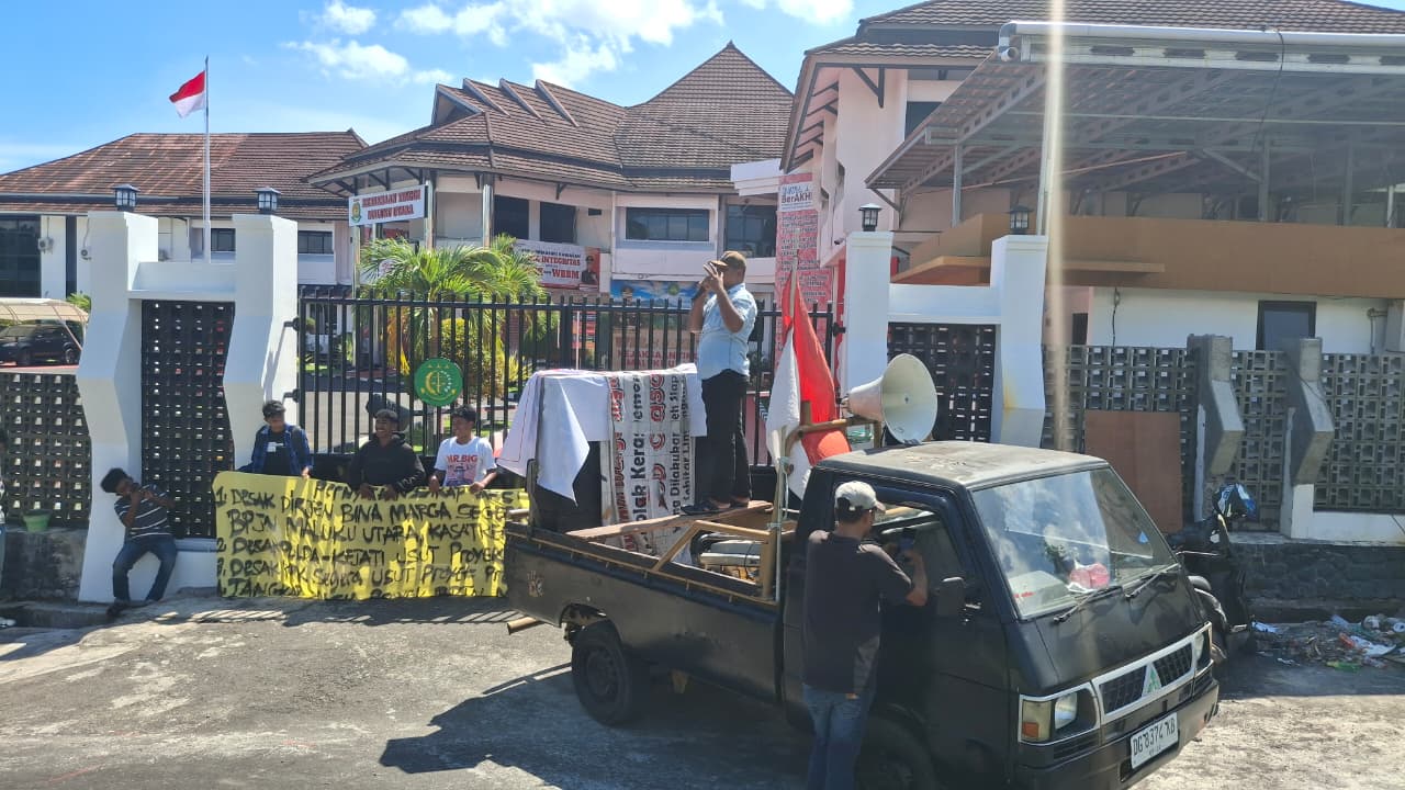 TERNATE, NUANSA – Front Pemuda Peduli Maluku Utara (FPP Malut) menggelar aksi unjuk rasa di depan Kantor Kejaksaan Negeri Ternate dan Balai Pelaksanaan Jalan Nasional (BPJN) Maluku Utara, Senin (22/12).