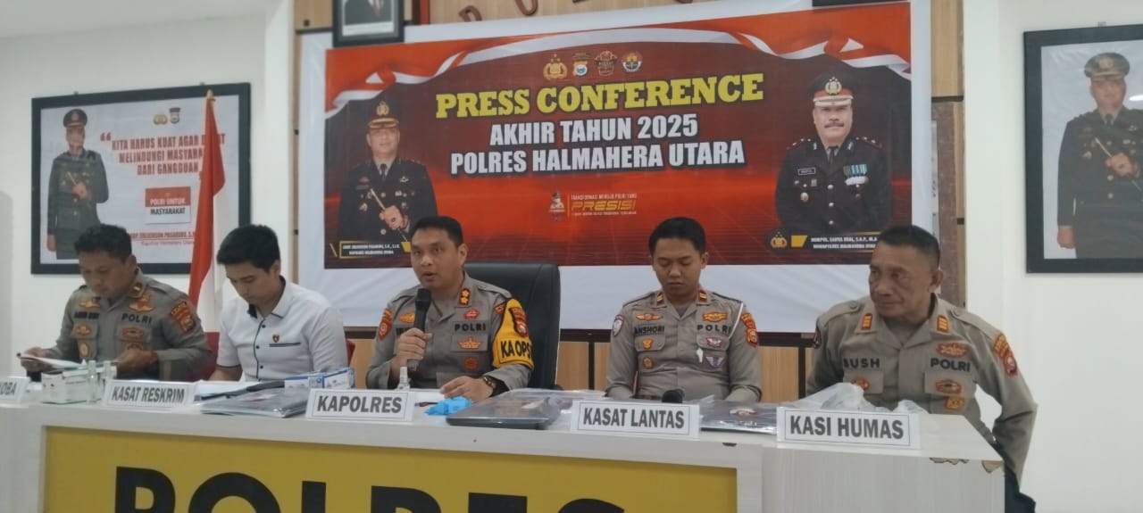 Hal ini disampaikan Kapolres Halmahera Utara, AKBP Erlichson Pasaribu, dalam konferensi pers akhir tahun 2025, Selasa (30/12).