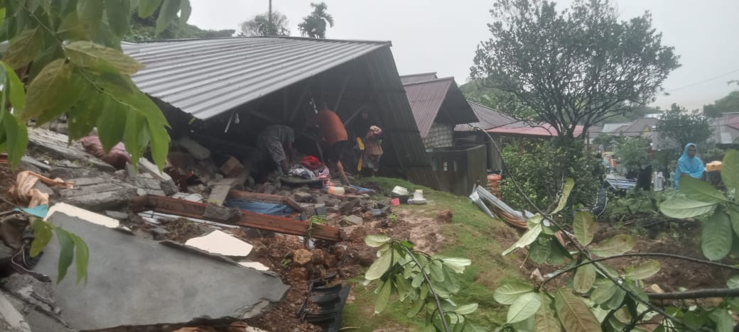 “Longsor terjadi setelah hujan deras mengguyur cukup lama, sehingga tanah di sekitar permukiman warga menjadi jenuh air dan runtuh secara tiba-tiba. Pagi ini kembali terjadi longsor susulan yang mengakibatkan kerusakan pada rumah warga lainnya,” ujar Masbuk.