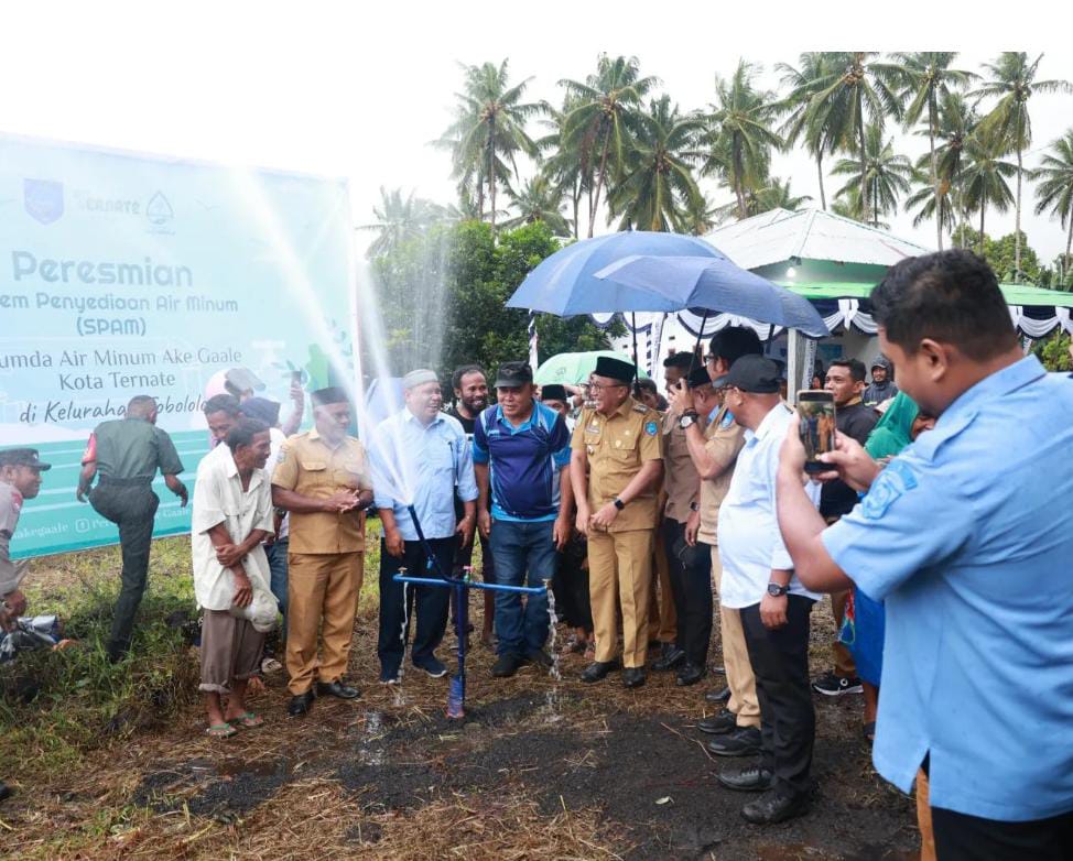 TERNATE, NUANSA – Wali Kota Ternate sekaligus Kuasa Pemilik Modal (KPM) PDAM Ternate, M Tauhid Soleman, meresmikan Sistem Penyediaan Air Minum (SPAM) yang telah diserahterimakan dari Dinas Pekerjaan Umum (PU) kepada Perumda Air Minum Ake Gaale di Kelurahan Tobololo, Kecamatan Ternate Barat, Senin (12/1).