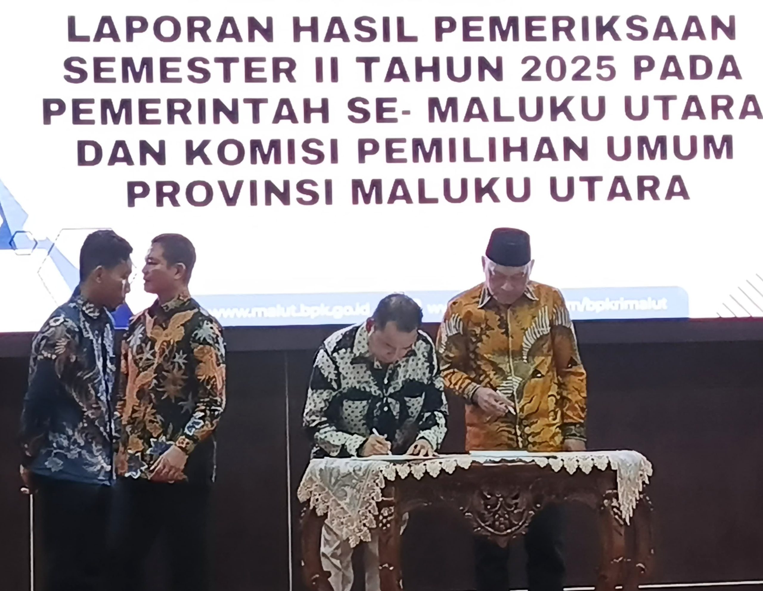 TERNATE, NUANSA – Badan Pemeriksa Keuangan (BPK) RI Perwakilan Maluku Utara menyerahkan Laporan Hasil Pemeriksaan (LHP) Semester II tahun 2025 pada pemerintah provinsi dan Komisi Pemilihan Umum (KPU) Maluku Utara.