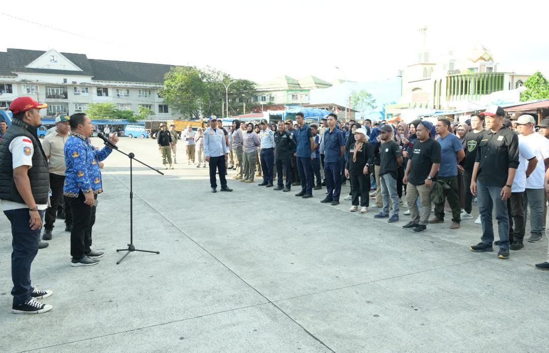TERNATE, NUANSA – Pemerintah Kota Ternate menggelar apel gabungan di kawasan Terminal Gamalama, Kamis (29/1). Kegiatan ini dilakukan dalam rangka penataan kembali ruang-ruang kota menjelang bulan suci Ramadan 1447 Hijriah.