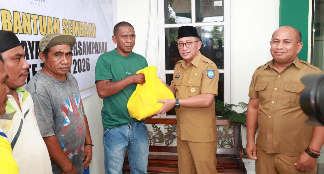 TERNATE, NUANSA – Pemerintah Kota Ternate menyalurkan bantuan paket sembako kepada 345 petugas kebersihan di kantor Dinas Lingkungan Hidup Kota Ternate, Senin (16/3).
