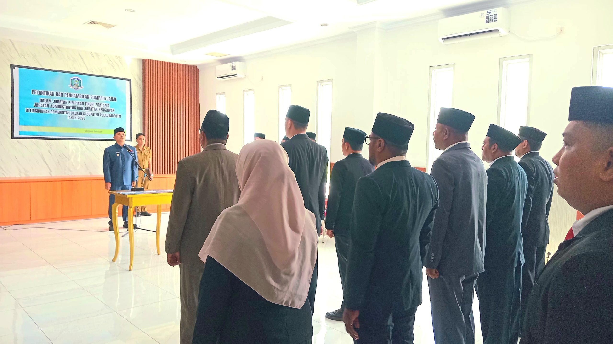 Pelantikan 13 pejabat ini berdasarkan Petikan Keputusan Bupati Pulau Morotai nomor 821.22/01/KEP-PM/2026. Nomor 821.23/02/KEP-PM/2026. Nomor 821.24/03/KEP-PM/2026, tentang Pengangkatan Pegawai Negeri Sipil dari dan dalam Jabatan Pimpinan Tinggi Pratama, Jabatan Administrator dan Jabatan Pengawas di Lingkungan Pemerintah Daerah Kabupaten Pulau Morotai, tertanggal 30 Maret 2026.