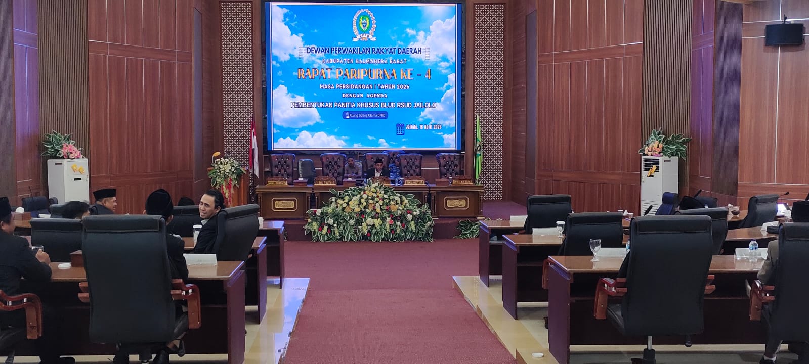 JAILOLO, NUANSA – Dewan Perwakilan Rakyat Daerah (DPRD) Kabupaten Halmahera Barat resmi membentuk Panitia Khusus (Pansus) untuk mengevaluasi tata kelola Badan Layanan Umum Daerah (BLUD) RSUD Jailolo. Pengesahan ini dilakukan melalui Rapat Paripurna ke-4 Masa Persidangan I Tahun 2026, Kamis (16/4/2026) di ruang Paripurna Kantor DPRD Halbar, Desa Hatebicara Kecamatan Jailolo.