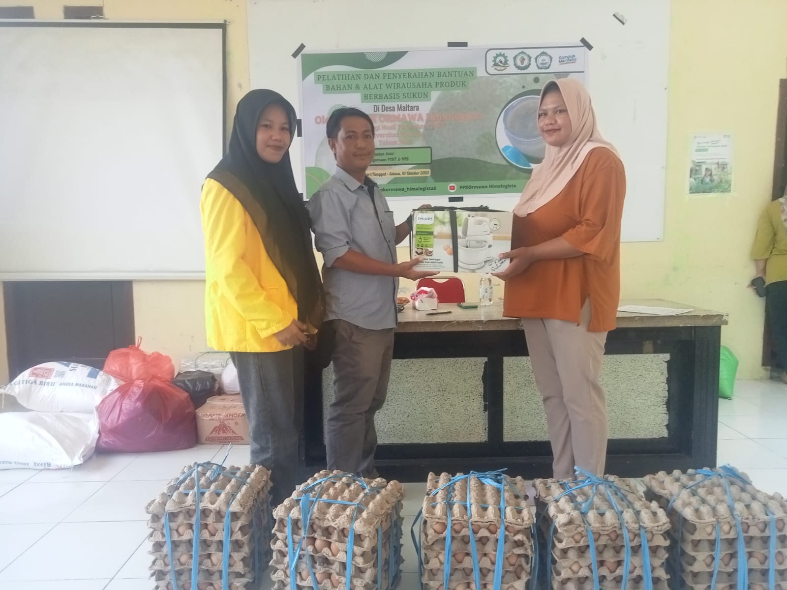 Selain memberikan pelatihan, tim juga memberikan bantuan berupa barang dan alat kebutuhan usaha untuk dijadikan modal dasar dalam memproduksi produk berbasis sukun (tepung sukun, biskut sukun, dan selai sukun).