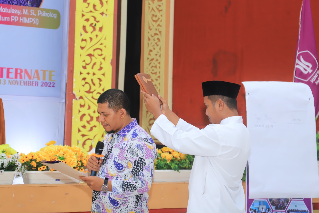 TERNATE, NUANSA – Syaiful Bahry, S.Psi, MA kembali terpilih menjadi Ketua Himpunan Psikologi Indonesia (HIMPSI) Wilayah Maluku Utara Periode 2022-2026. Syaiful terpilih dalam kegiatan Muswil II HIMPSI Malut yang digelar di Asrama Haji Ternate, Minggu (13/11) tadi. Muswil itu diawali dengan kegiatan Seminar Nasional yang mengangkat tema “Meneropong Masa Depan UU Pendidikan dan Layanan Psikologi”.